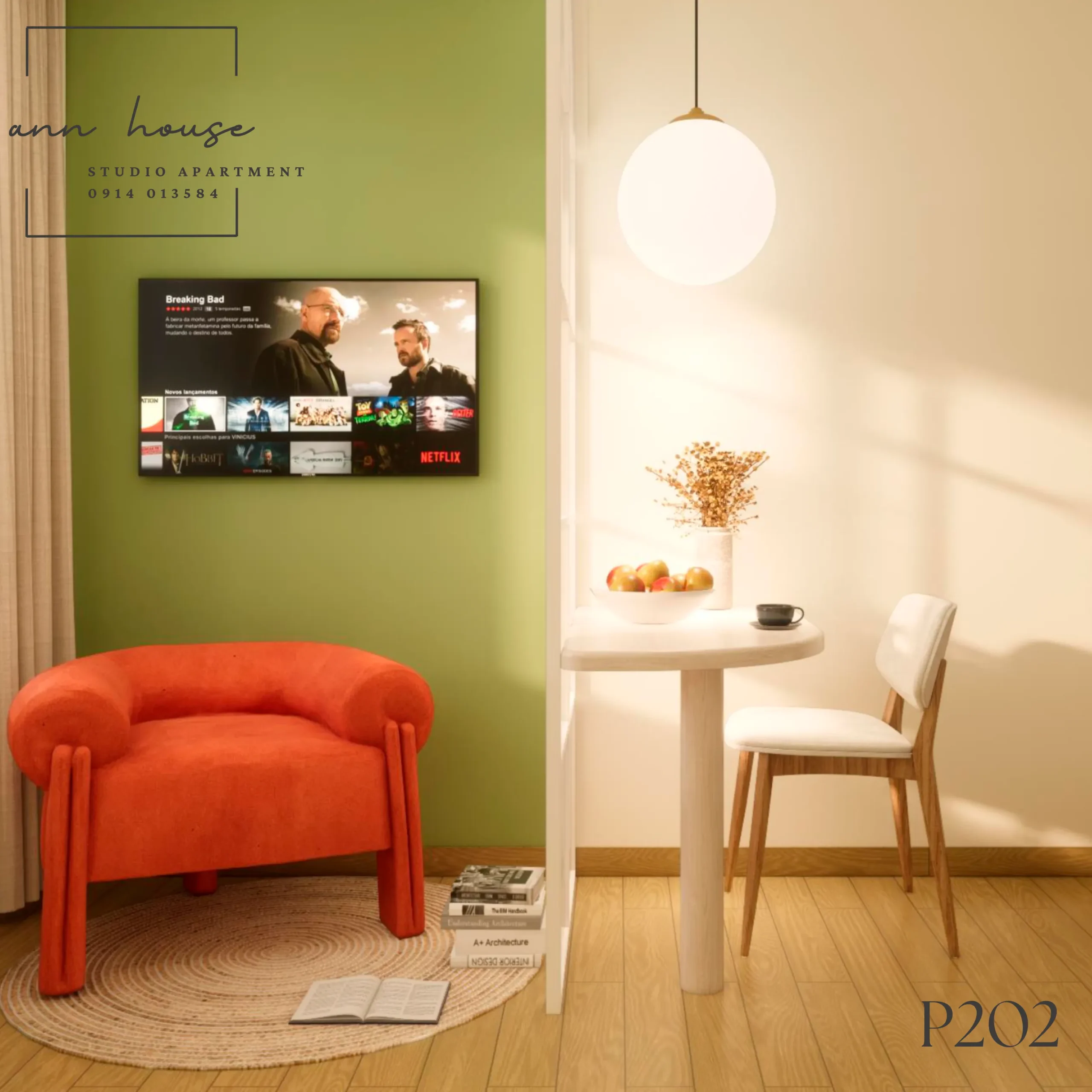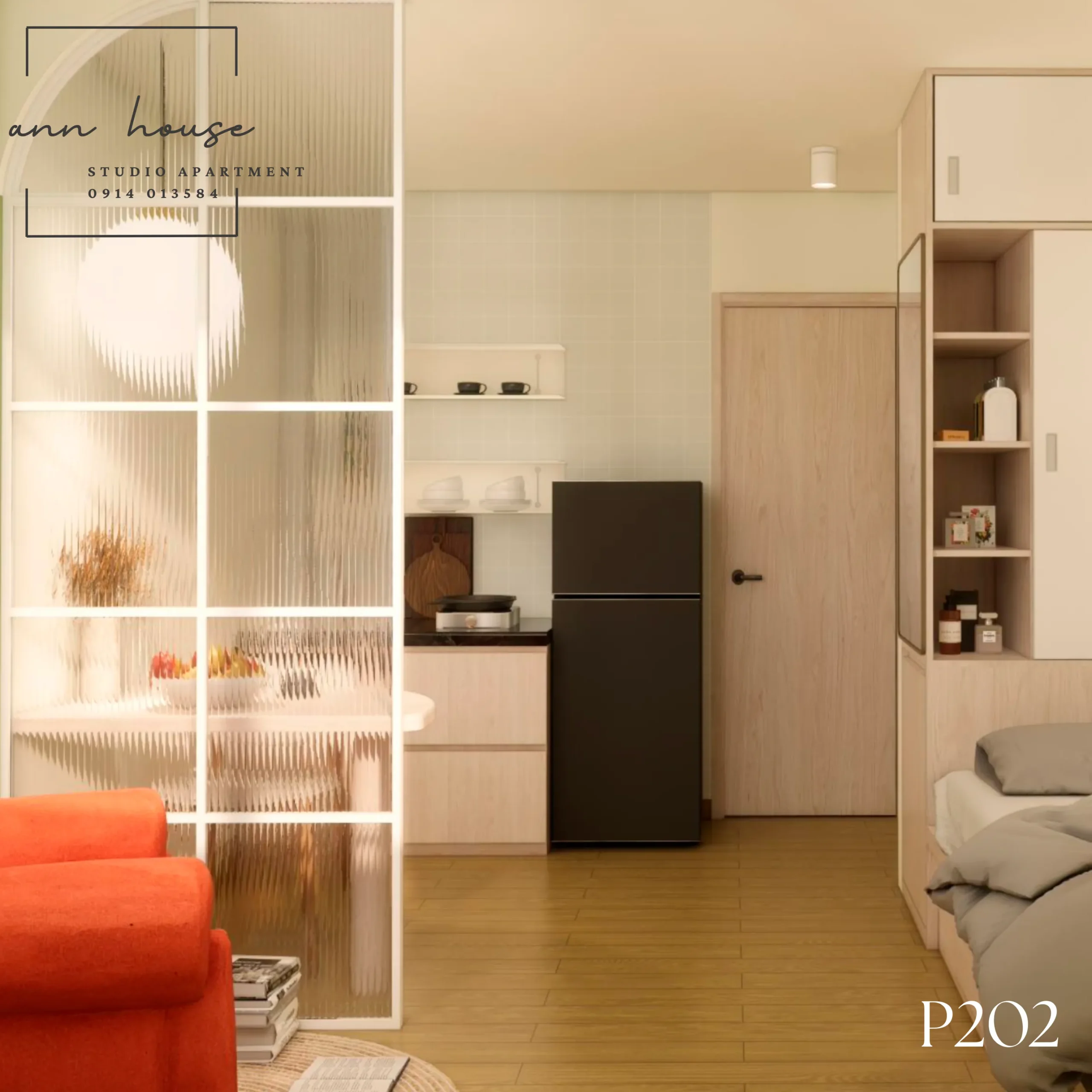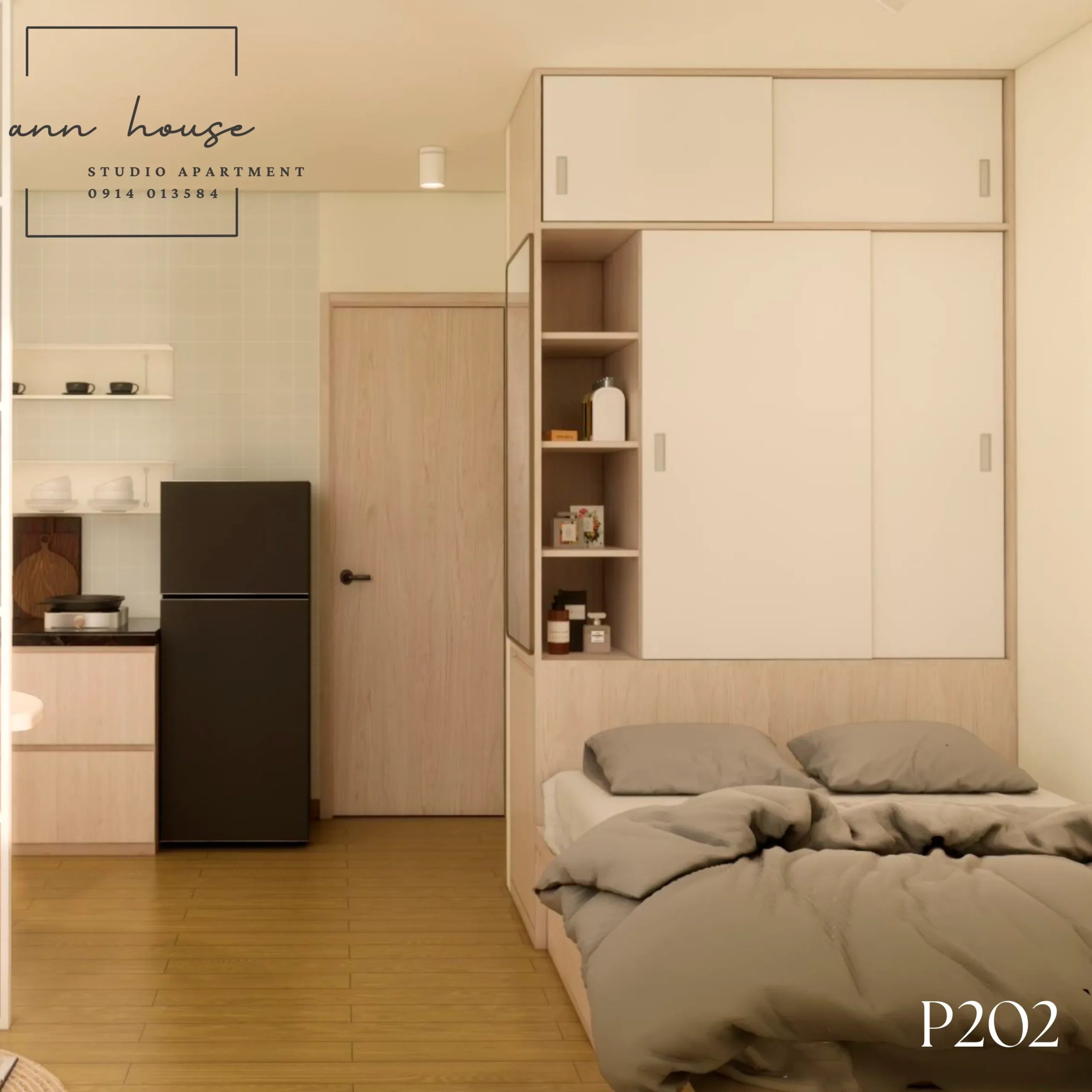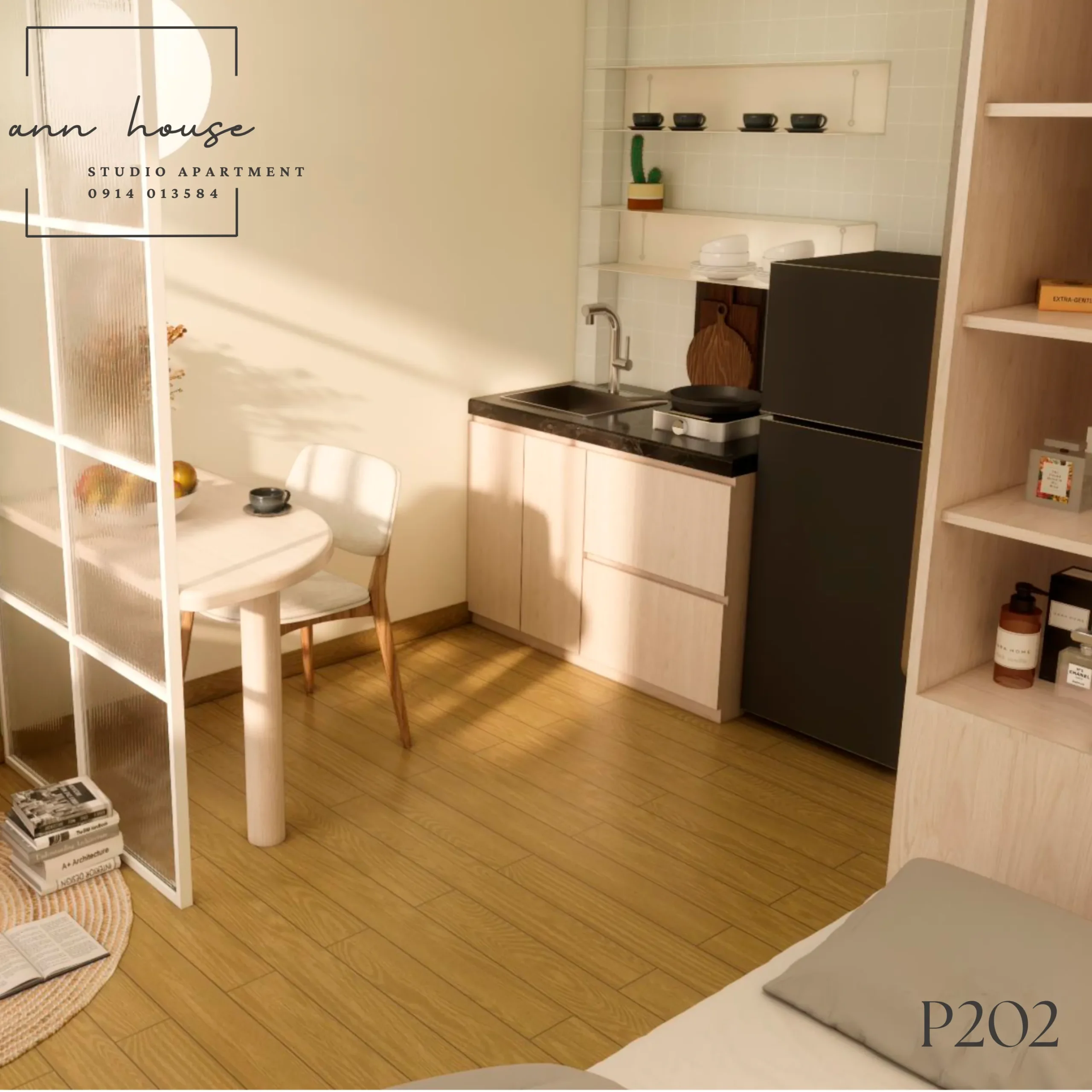Ann House 202 là studio mang phong cách Minimalism kết hợp Scandinavian với tone màu be – gỗ và xanh lá, tạo cảm giác thư giãn và gần gũi với thiên nhiên.